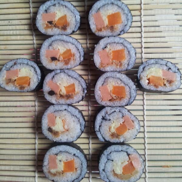 哈哈!味道不错!放了几种陷的!没有青瓜,放了红萝卜,也很好吃!