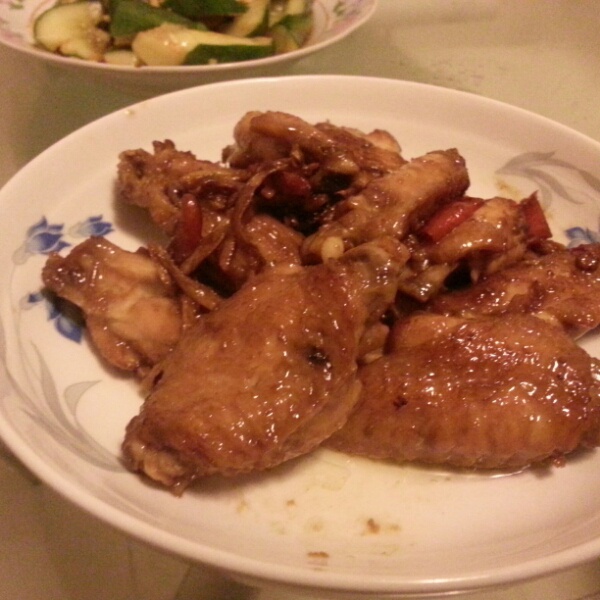 这次有进步,果然油要热一点,鸡翅腌过后水要脱干净就不会粘锅了,味道很足
