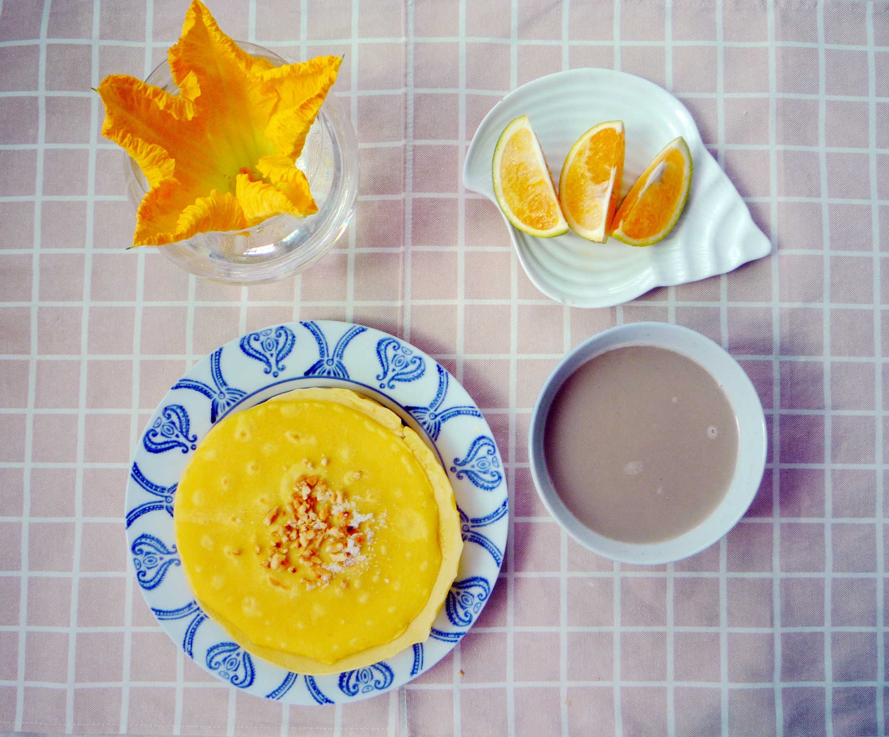 奶香玉米饼+花生芝麻糊+绿橙~