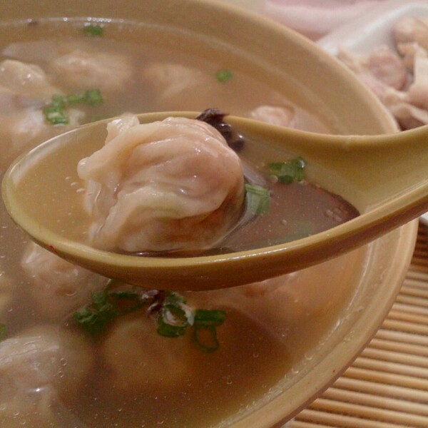 昨天无意发现了福清居然也有地方售肉燕皮,果断买下几十张回来,今天自己熬了高汤,剁了肉馅、香菇、马蹄、姜蓉、葱蓉适量老抽、生抽、料酒、盐、鸡精腌制几个小时后包的。(明显肉馅包的比较多)^ω^