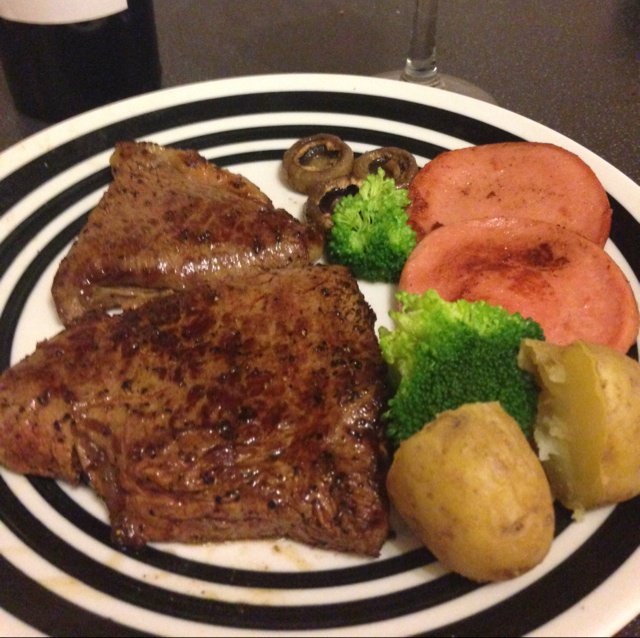 Ansel-daphnae 做过 顶级牛排 #晚餐•7 Feb 2014#Brilliant!选的牛腱,喜欢butter味所以腌制过程多加了隔水化的黄油。三成熟,入口柔软确不腥,再配上Trapiche pure,相辅相成,温柔的亲吻了口腔每一角落。 2014-02-08