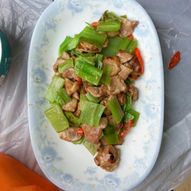 菜心皮炒肉~菜心皮得把里面白色的丝去掉吃起来才能嚼的动~