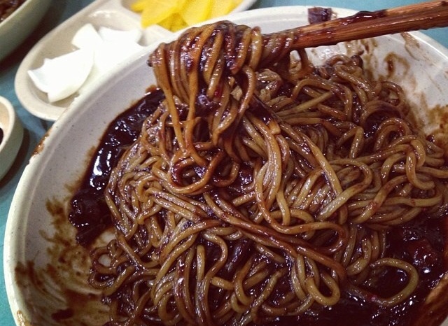 蓝朋友的快手炸酱面。非洲来的面。下次要换脸盆给他盛!!(●°u°●) 」