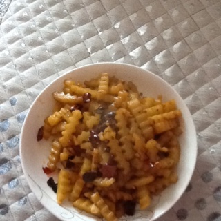 没吃过南方那种小吃,但是喜欢这土豆形状,水煮八分熟,然后辣炒的。