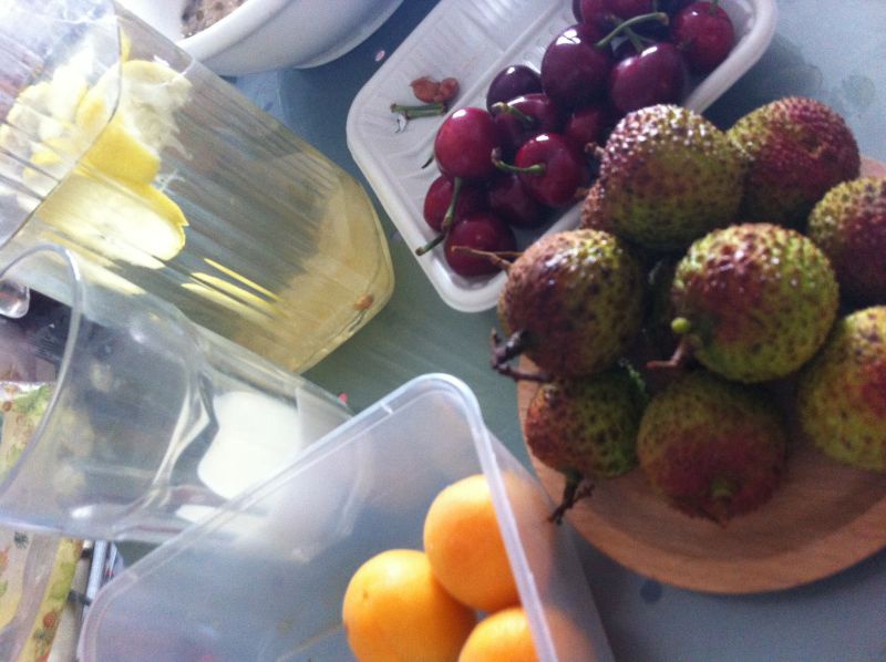 菁鱼 做过 水果拼盘 露个脸。。杏是他家的杏树结的果实。隔年结一次。在一起的第二次结果。随便share一下挑樱桃和荔枝的窍门儿。樱桃~挑深红色的,越深越甜,小棒儿越粗约短越甜。荔枝~以红绿色都有为好,找扎手的,底部较圆的它长的饱满就会较甜。姐妹们,吃起来(~o~) 2014-06-05