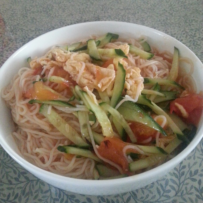 鸡蛋西红柿捞面,把面过了水,没有那么热那么粘了,好吃!