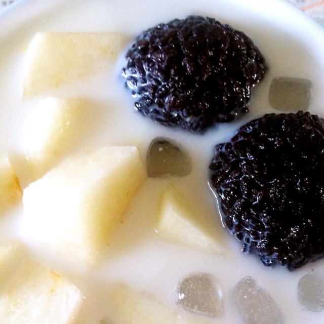 梨子黑米捞,下面是厚厚的玉米粒,沉底了