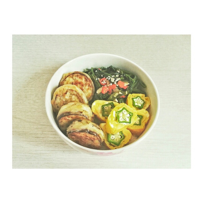 中午不在家 可是昨天就计划好今天要吃什么 早餐直接煮饭 厚蛋烧歪成一坨哈哈哈 也算又拔一颗草啦✔