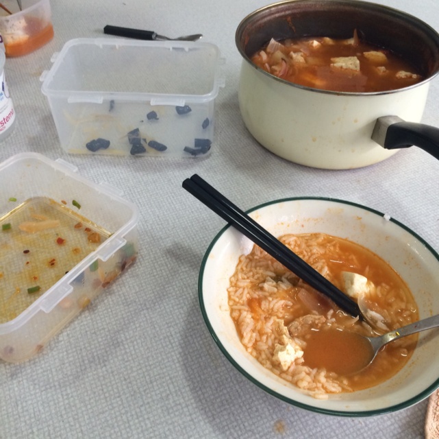 土豆已经扫光了,泡菜汤虽然味淡但还是能满足汤泡饭的愿望了~