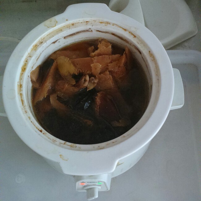 榴莲壳炖鸡,加了红枣,电炖锅炖了一晚