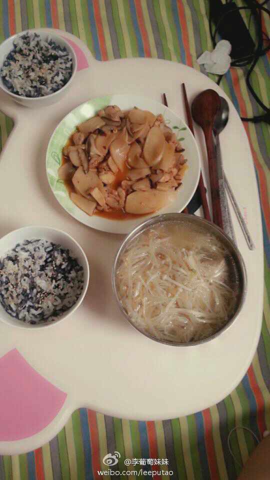 耶达达 做过 营养黑米饭- 寂寞厨房系列 这是小科科为我做的一顿正餐。杏鲍菇鸡腿肉,金针菇汤,配上营养的黑米饭。哎呀,想起来也好久没吃过小科科做的饭啦~什么时候再做给小姐姐我吃呀~~~嘿嘿~~~ #我是爱学妹的好学姐# #早餐•2014年9月9日# 2014-09-09