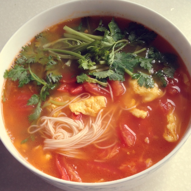 一大早一碗西红柿鸡蛋面,撒一把香菜,老公吃得狼吞虎咽,直呼太好吃啦