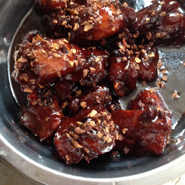 貌似冰糖炒过了点,上面撒的是山核桃粒....