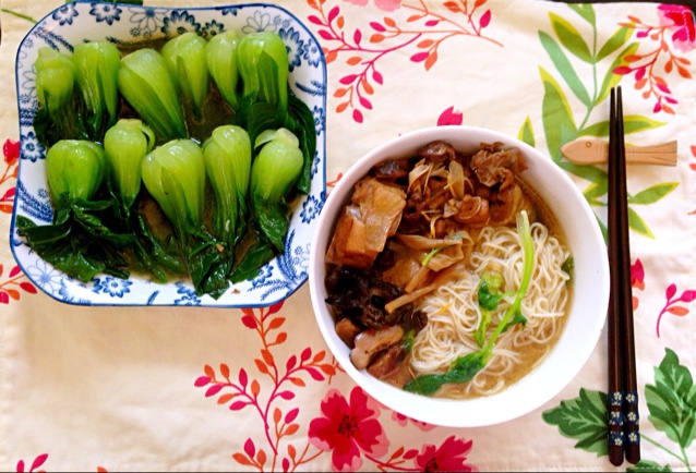 鸡兄是昨晚吃剩,加上面条配上青菜,成为温暖的午餐~