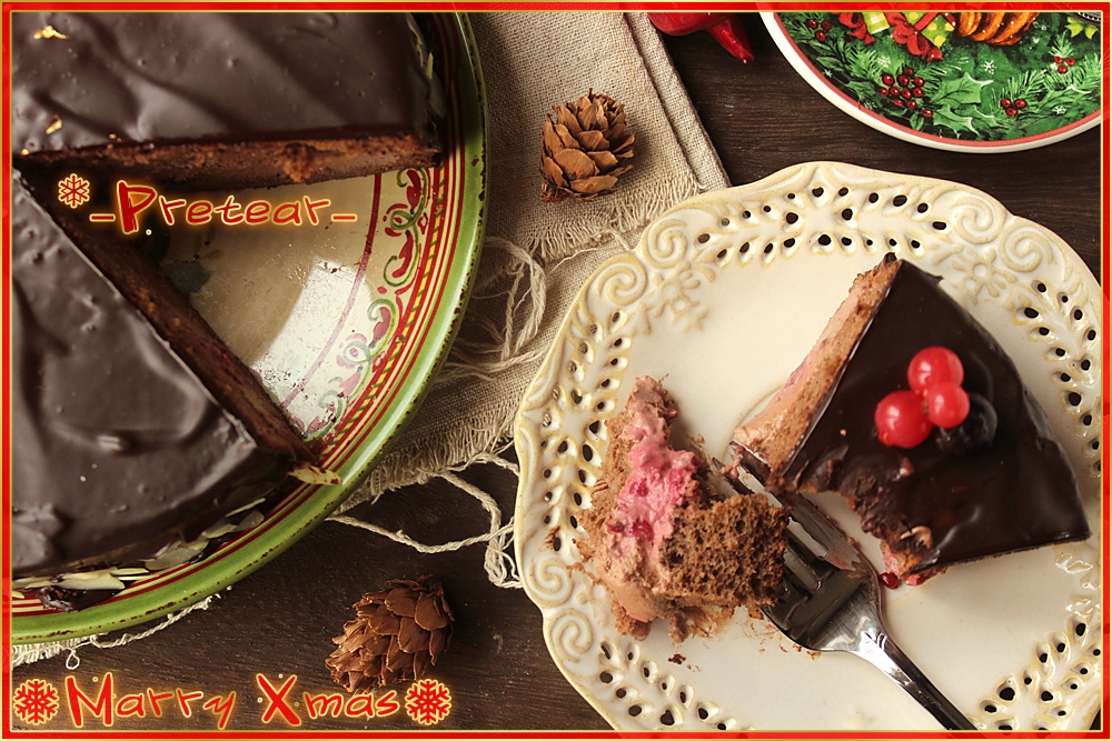 圣诞树莓巧克力蛋糕