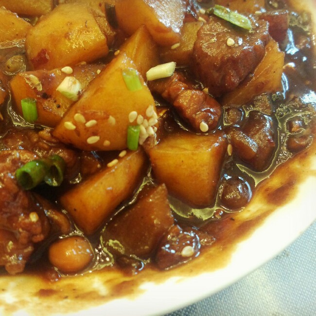 王大猫想去巴黎 做过 土豆烧肉 与其说是红烧肉,不如说是红烧土豆。由于没有五花肉只有用瘦肉代替,不过口感肯定大大降低了。但是第一次做,土豆还是很感人的好吃。剩下的料还没有浪费用来煮面超好吃!再接再厉吧#午餐•2014年12月26日# 2014-12-26