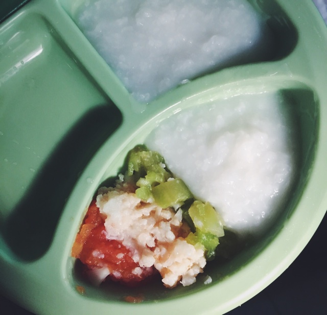 D114 黃瓜番茄菜花銀鱈魚大米粥 依然是小病號餐。。估計最近都要喝粥了