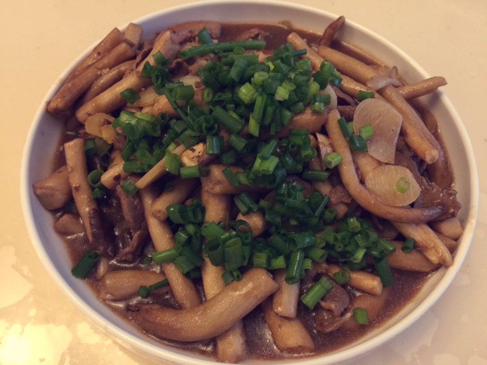 牛肉丝炒茶树菇
