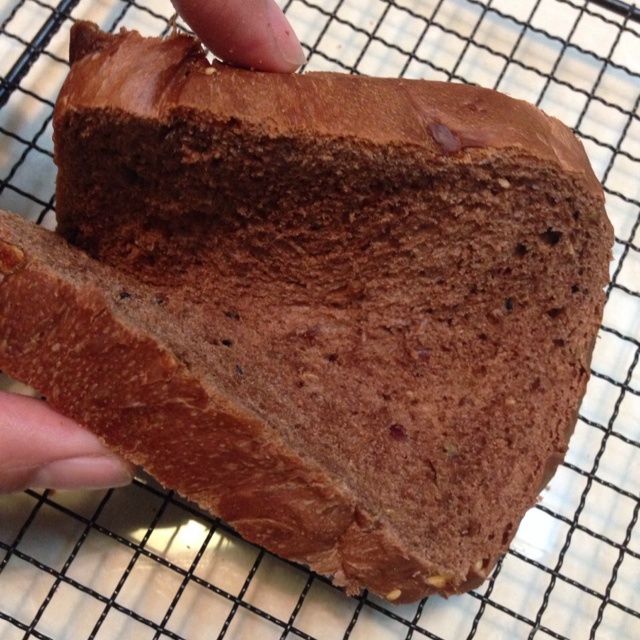 快乐鸟LWL 做过 早餐•2015年1月18日 阿佳拉可可吐司这是我随心做的可可面包/吐司。我根据自己口味放了上等多种材料,补铁又补锌等营养。香!手感柔韧,口感柔软,吃了还想吃。嘻嘻,我切的有点厚,请忽略模样。 #早餐•2015年1月18日# 2015-01-18