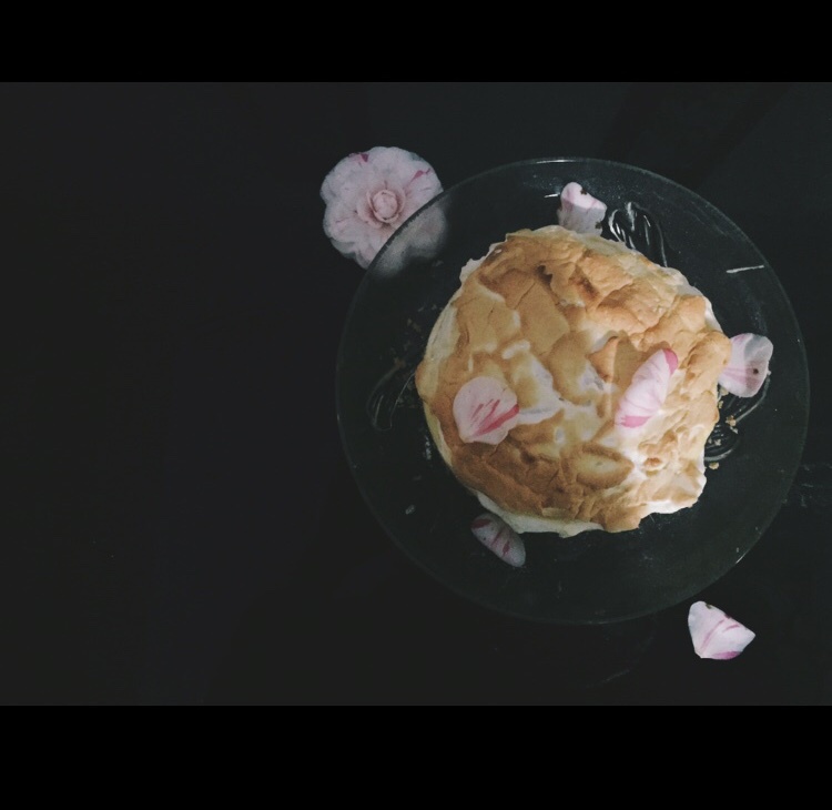 蛋白topping冷后有点整体回缩诶,是我没烤透咩。放顶层温度又这么高小烤箱真的很害怕(▼へ▼メ)