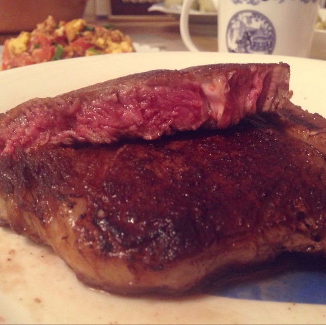 又是大块牛肉的一餐。三成熟澳洲t骨扒。