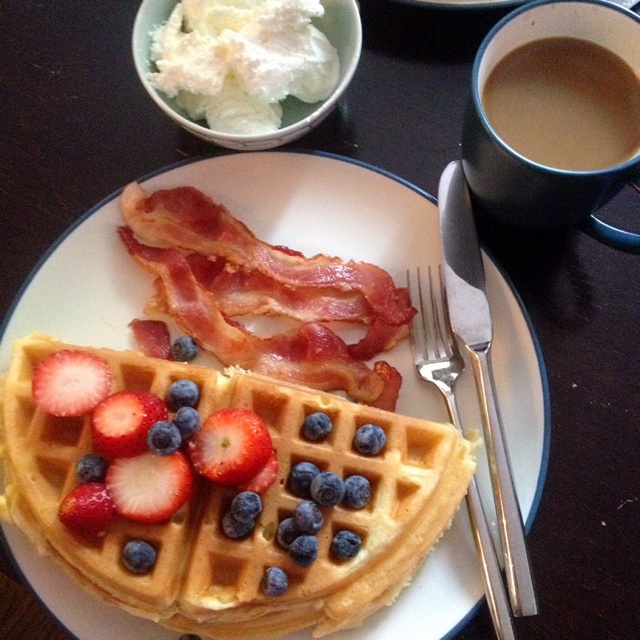 培根华夫咖啡。周日大动干戈的早饭啊!