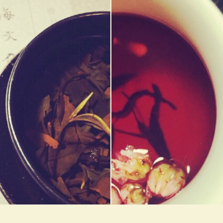 两茶皆为好友所赠,右为姑娘从北非寄回的苏丹花饮,左为修道之君用牛皮纸从山西丈家包裹带回的老白茶