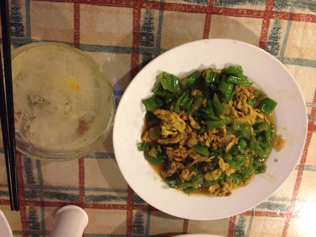 家里的土鸡蛋炒辣椒,银耳汤!
