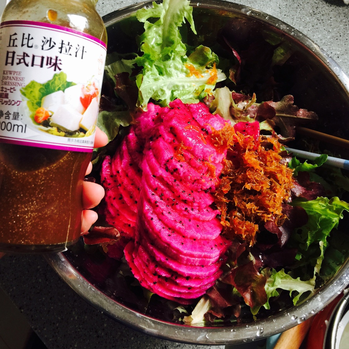 生菜瑶柱丝火龙果色拉