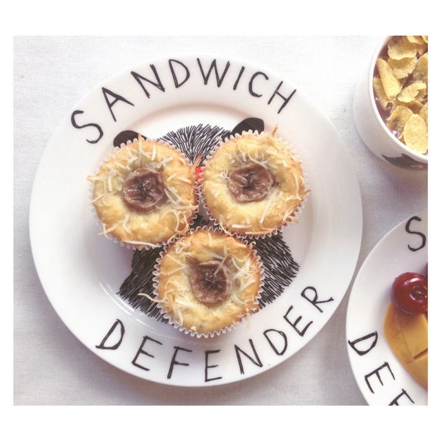 xxYu 做过 椰丝香蕉杯蛋糕 味道很不错,稍微有点点消泡,因为粉有点多,拌的时间久了点,冷藏后更好吃,这个量有点大,做了一个长条的磅蛋糕模和四个杯子蛋糕 #早餐•2015年5月24日# 2015-05-24