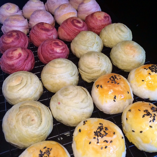 蛋黄酥~紫薯、抹茶、原味~花好月圆,中秋快乐~内附一次做六色蛋黄酥方法~