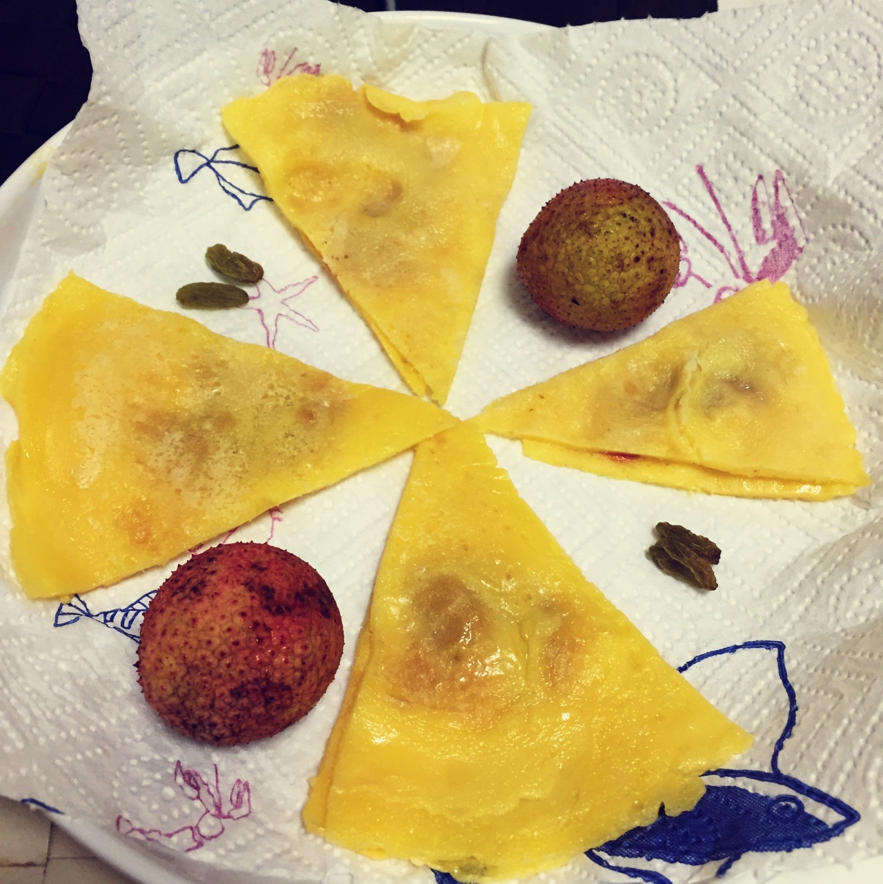 快手早餐,蛋中间用了诺诺爱吃的番茄酱和色拉酱。