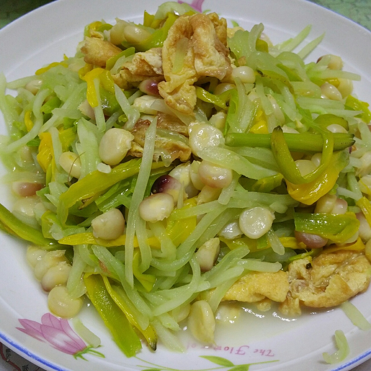 第一次炒新鲜黄花,配了鸡蛋、黄瓜丝和玉米粒,很清香哦自我感觉不错,嘿嘿