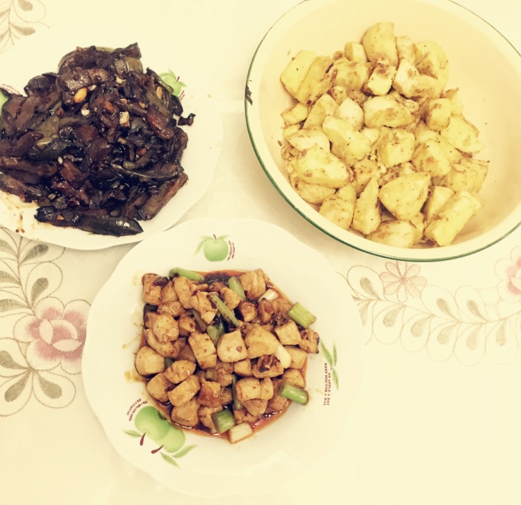 酱香茄子 宫保没有花生的鸡丁and炒馒头