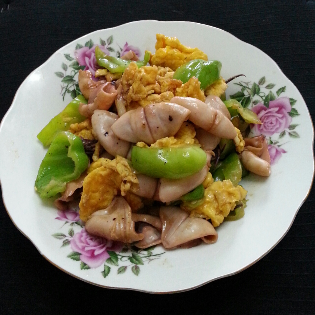 青椒鲜蛋炒墨斗鱼