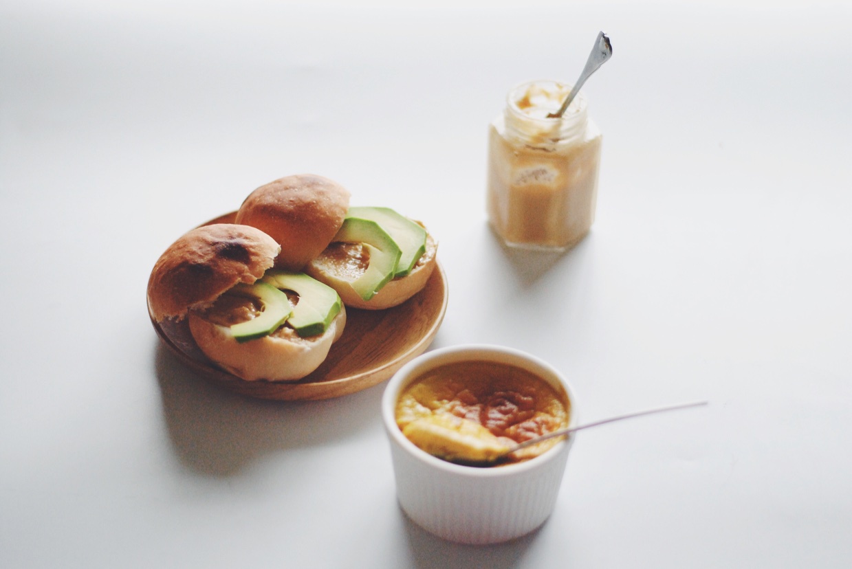 咸甜_ 做过 工作日早餐 #工作日早餐#周五啦~台风今天晚上正面袭击,暴风雨要来了~早晨是阴天,异常的宁静ˊ_>ˋ今天吃花生酱牛油果小餐包,芒果布丁~ #早餐•2015年7月10日# 2015-07-10