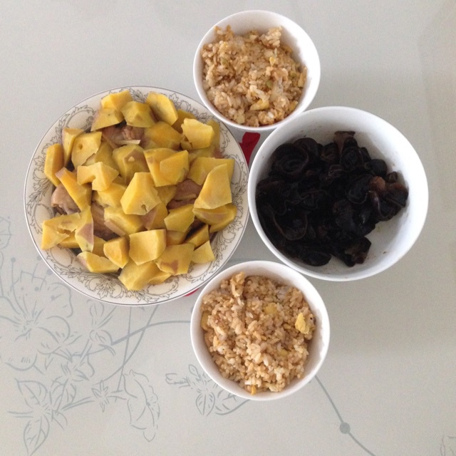 酱油炒饭 红薯蒸鸡腿 拌木耳