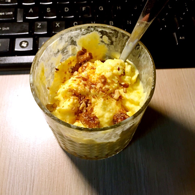 牛肉咖喱饭 做过 酸奶冰 第一次做的时候由于粗心比例整个对调过来了,任务失败…第二次做的时候就好很多了,不过呢,或许是牛奶多了,或许是冰箱不够给力,从七点到十二点才冻到满意的形态。这里我加入的是蜜糖核桃,口感味道都不错,当然看相不深究的话。 #早餐•2015年8月5日# 2015-08-05