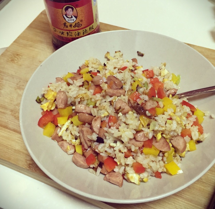 消灭冰箱菜—小清新彩椒香肠蛋炒饭配重口味老干妈