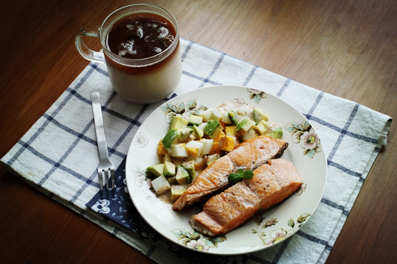 干煎三文鱼配牛油果~