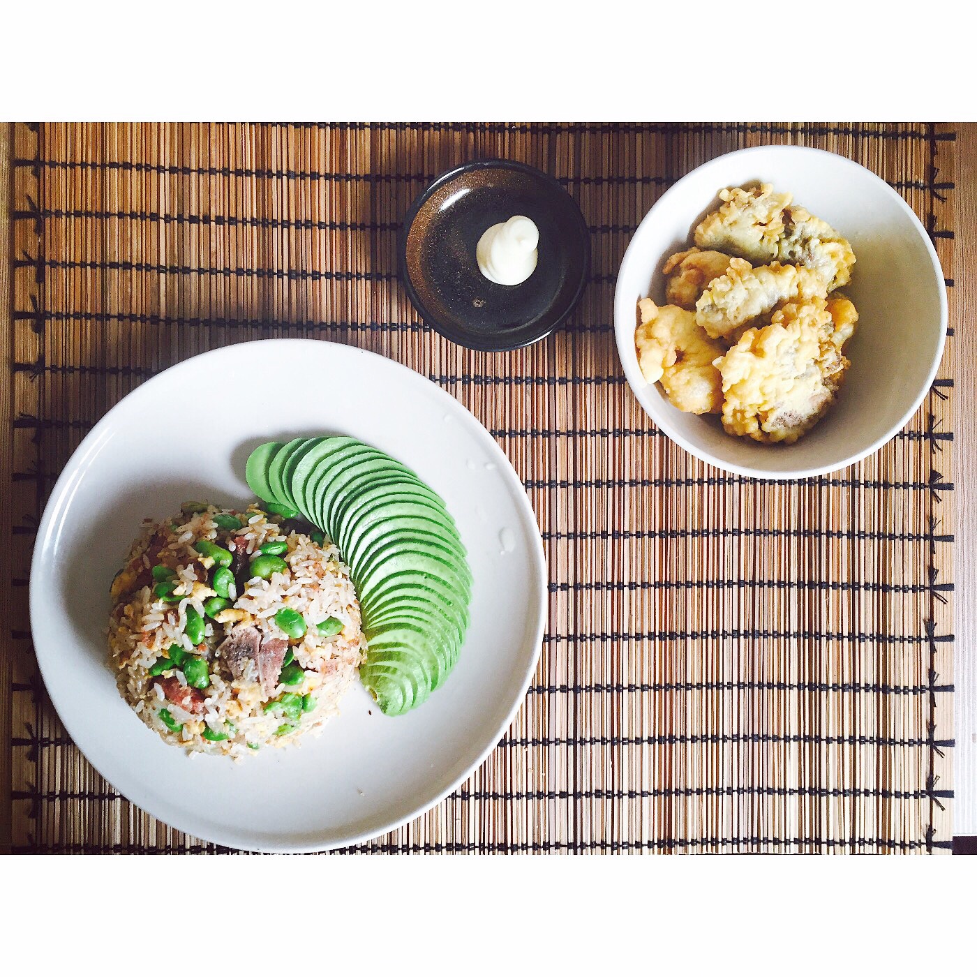 百惠echo 做过 杂食集【唯美食与你不可辜负】 #一个人在魔都#我想大吼一声我也是可以切出整齐漂亮的牛油果的人呐哈哈哈哈哈哈哈哈做了毛豆腊肉鸡蛋炒饭前几天没吃完的炸鸡配上蛋黄酱再加上在厨房买的牛油果简单但温暖的一餐 #晚餐•2015年9月3日# 2015-09-03