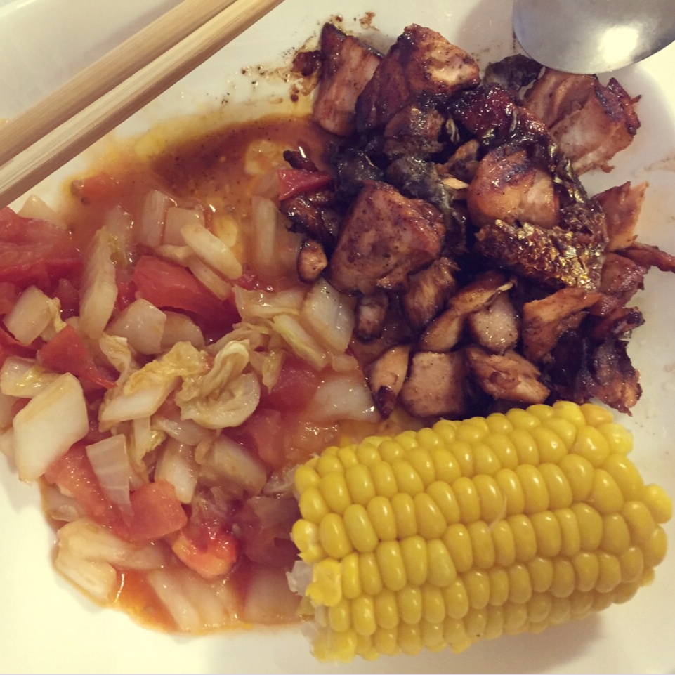 其实是昨天的晚餐~ 简单的白菜番茄小炒和煎三文鱼 蜂蜜抹多了