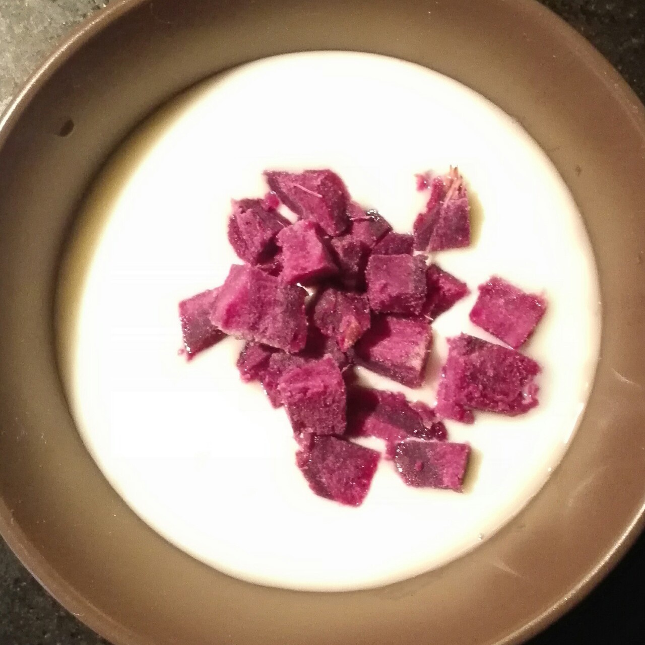紫薯丁酸奶,其实我到觉得它俩不是很搭,反而是放入苹果碎后口感变得好很多。