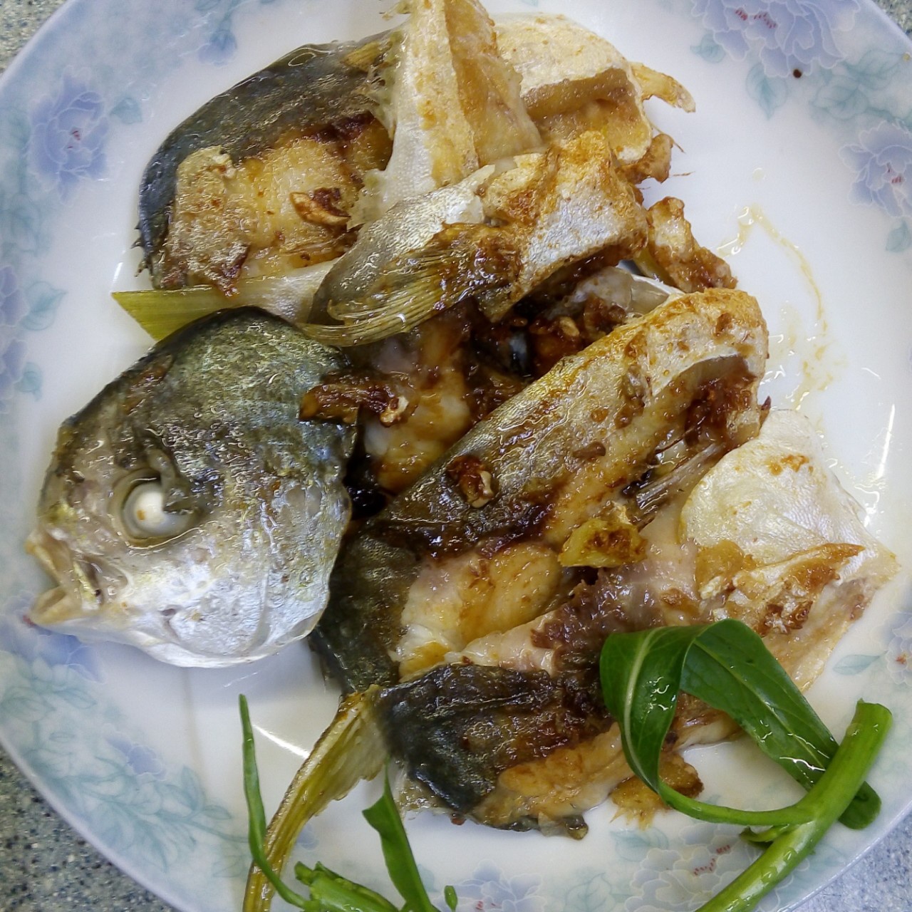 今个晚餐——煎焗金仓鱼,炒菜心,卤水鹅脚翼