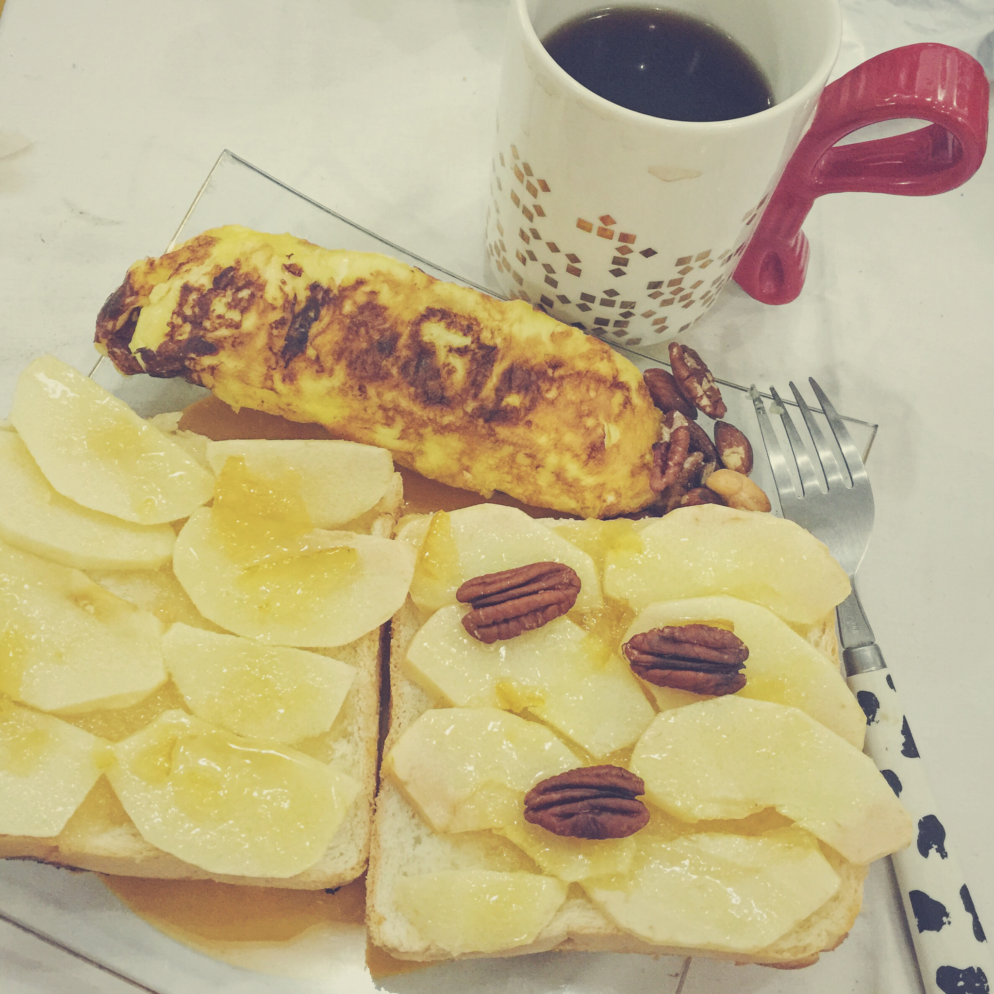 早安 黑咖 芝士厚蛋烧 蜂蜜苹果吐司
