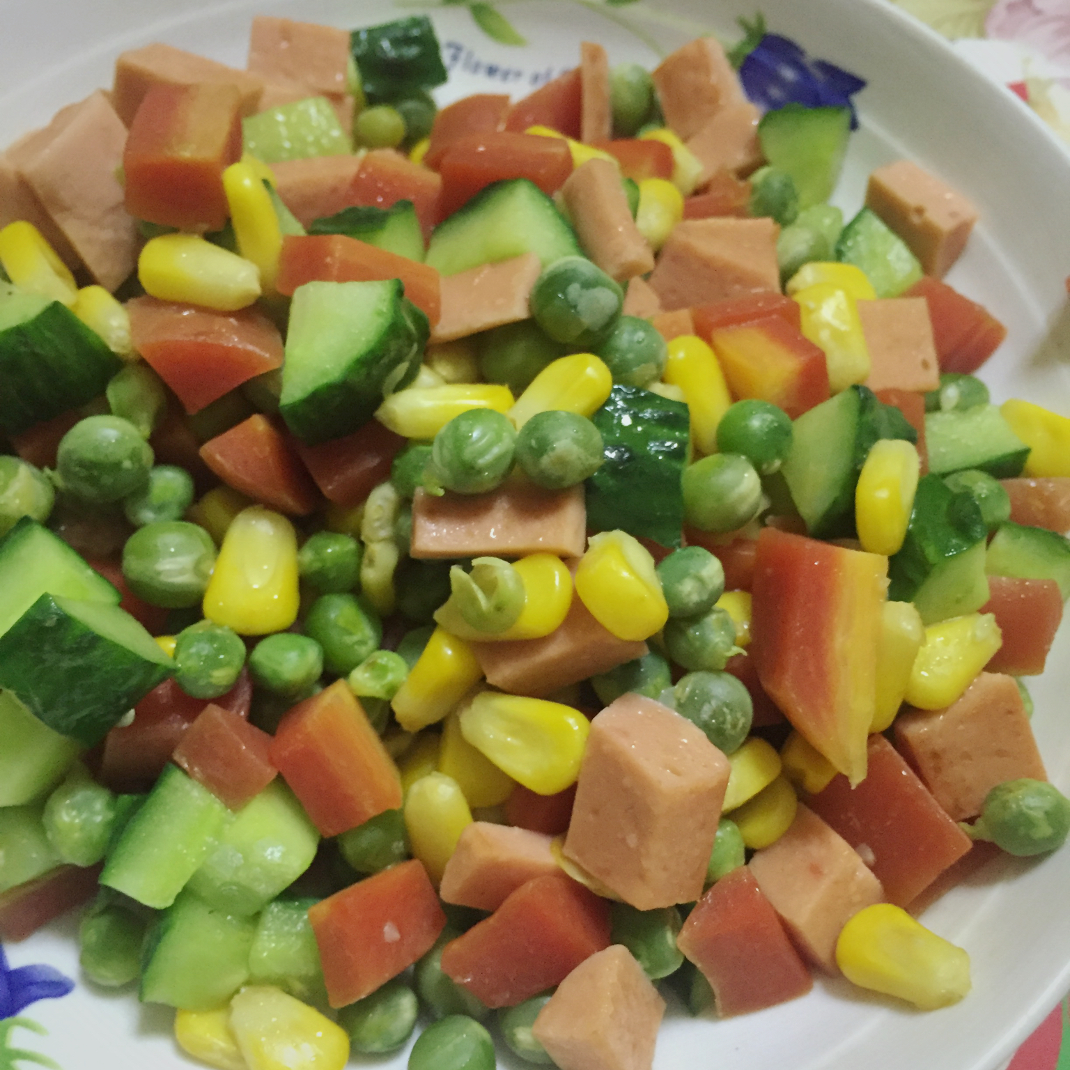 胡萝卜玉米豌豆炒火腿