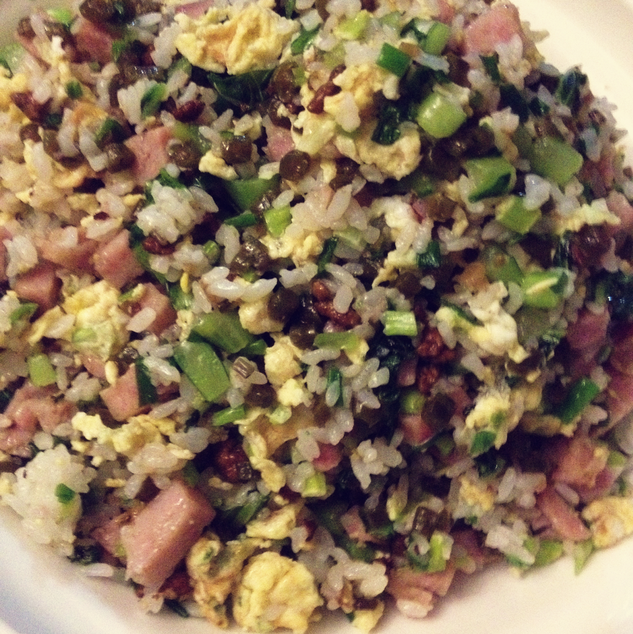 酸豇豆蒜肠菜饭、茄子酱、腐竹甜黄瓜