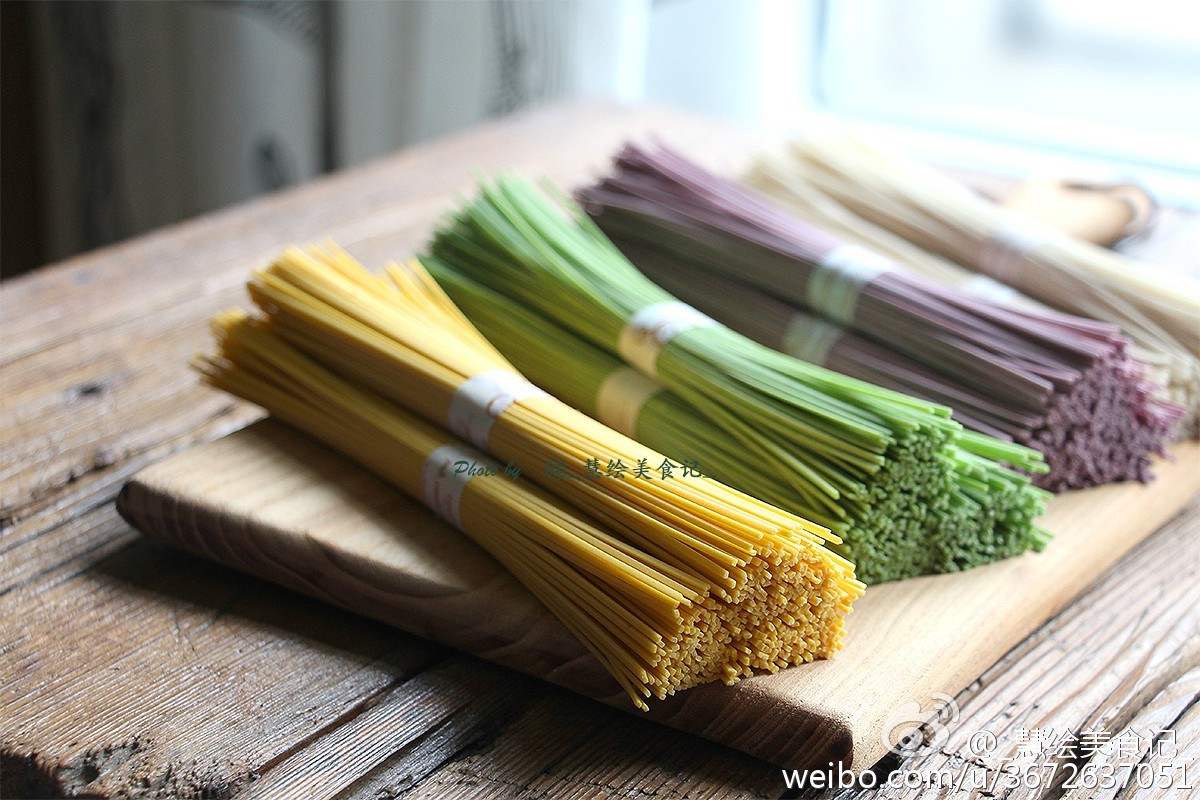 _慧绘美食记_ 做过 彩色面 有机面 蔬菜面 手工面 女侠森森 压了这么多次面条,终于做出来了细细的蔬菜挂面~ #心里住着一道彩虹# #面食N次方# #晚餐•2015年11月26日# 2015-11-26