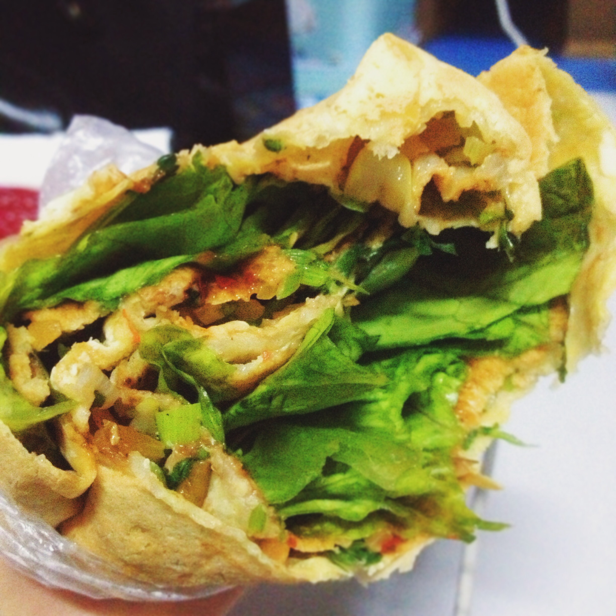 Raeast 做过 午餐•2015年12月2日 昨天在b站看美食圈的街頭小吃視頻 看到雜糧煎餅饞的不行 於是今天的午餐就是它!(⁎⁍̴̀◡⁍̴́⁎)♡ 只是吃完口好渴噢 hahaha #午餐•2015年12月2日# 2015-12-02