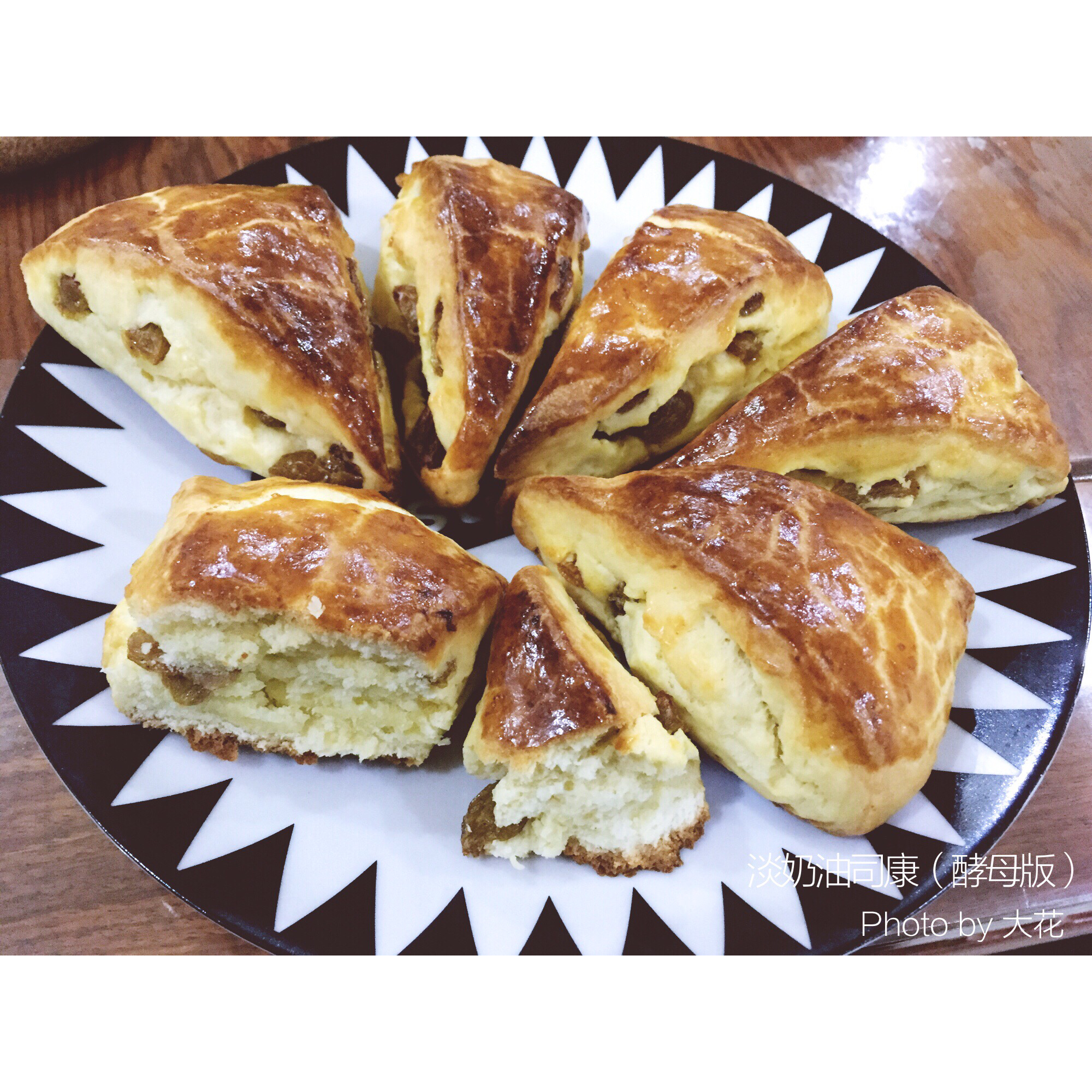 张大花 做过 葡萄干司康(酵母版) 新烤箱试温度,昨天揉好的面团,今天晚上试烤,最后5分钟看上色太厉害,内芯仍然有点不太熟的样子,降到了150度。尝了尝没有生面糊的味道,就这样吧…口感偏小餐包似的绵软,拆了一包1L的淡奶油着急消耗,就代替淡奶油了,没有考虑低温是否影响酵母活性,看成品确实也没怎么发的太高。配方量翻倍,整形成7寸左右2cm高圆,16等分。 2015-12-11